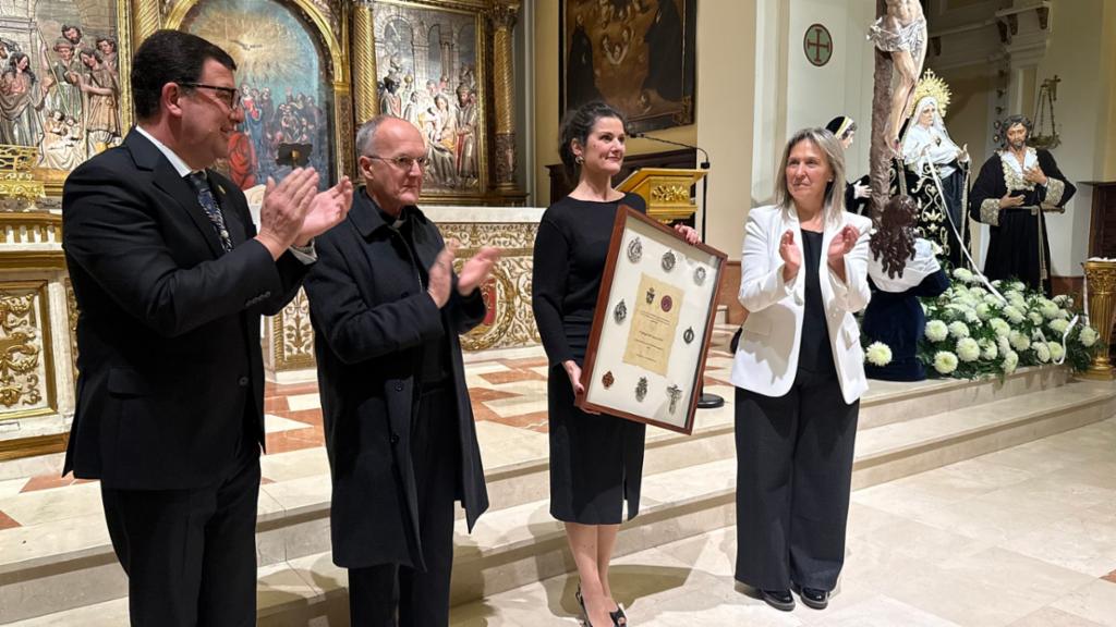 El templo se llenó de vecinos, cofrades y autoridades, entre ellos la alcaldesa Ana Guarinos, que acompañaron a Tomey en un acto cargado de emoción. La presentación corrió a cargo de representantes de las cofradías, quienes destacaron la sensibilidad con la que la actriz preparó su mensaje.