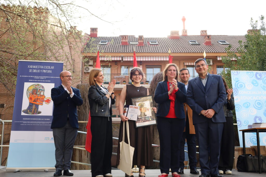 La alcaldesa de Alcalá, Judith Piquet, junto a la concejalía de Educación, Lola López Bautista, y varios miembros de la Corporación municipal, entre ellos los concejales Víctor Cobo y Antonio Saldaña, presidieron la apertura de la muestra y la entrega de diplomas y premios. En el acto participaron más de 200 alumnos en representación de los alrededor de 3.600 escolares que formaron parte de esta edición. Piquet agradeció a todos los participantes, docentes y familiares “su implicación en un espacio que promueve tanto la creatividad como el encuentro”. La regidora destacó que, un año más, se ha logrado el principal objetivo de la iniciativa: “apoyar y colaborar en propuestas que fomentan la expresión artística desde edades tempranas, un estímulo fundamental para el desarrollo físico y cognitivo, y compartir esos trabajos más allá de las aulas”.