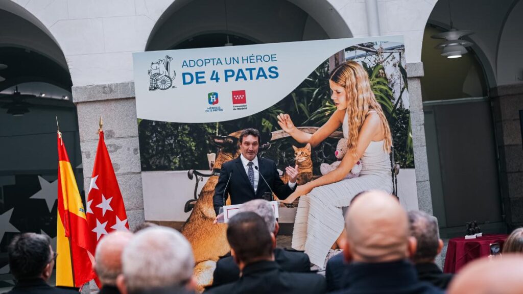 La Comunidad de Madrid ha sido reconocida por su compromiso con la adopción de perros jubilados que han servido en unidades caninas de distintos cuerpos de seguridad y emergencias. Pedro Antonio Ruiz, director de la Agencia de Seguridad y Emergencias Madrid 112 (ASEM112), recibió hoy este reconocimiento, llamado Jubi, otorgado por la asociación sin ánimo de lucro Héroes de 4Patas durante un acto celebrado en la Real Casa de Postas.